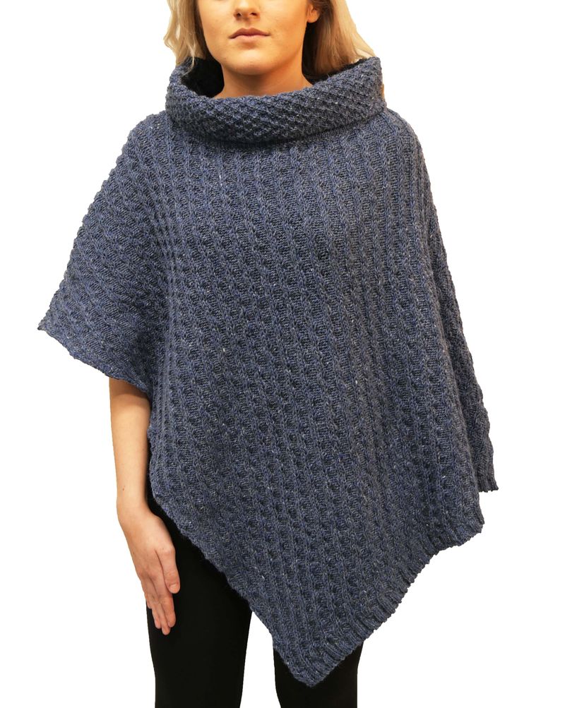 An easy worn cape with a pattern to represent the gravel river close to our factory. Knit with 70% wool and 30% mohair friends  in Donegal yarns.
