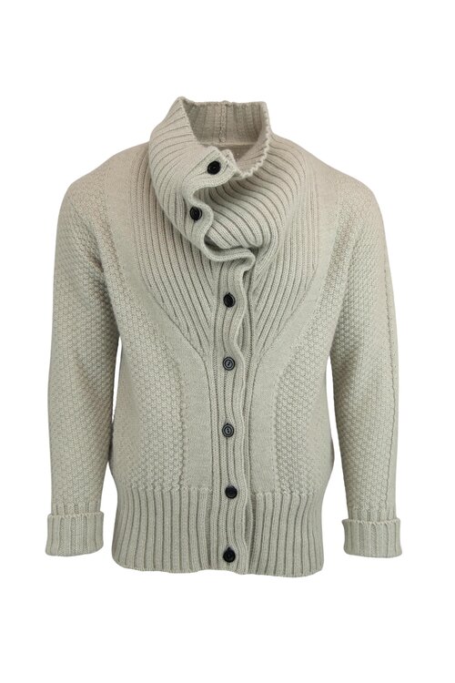 An exchange of texture and pattern feature in this luxurious cardigan, which has been inspired by the inlets surrounding the Loughrosmore Bay. This super soft wool and angora blend cardigan combines a moss stitch pattern with shaped ribbed funnel and features a button closure and two pockets. Made from soft Italian superfine wool and ethically certified and angora, traceable right back to the farm of origin. This piece conveys the idea that pieces should be timeless and is part of Bonner of Ireland’s Heritage range.