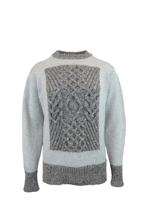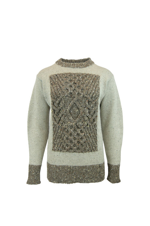 A distinctive character cable jumper made from beautifully soft 100% Superfine Wool with an authentic Donegal Tweed inlay panel and matching cuff and collar detail make this crew neck a statement piece. The signature cable panel portrays the epitome of style and is timeless. We firmly stand for the consumer’s right to know where and how each product has been made, ensuring benefits of those who manufactured it and to respect and protect the natural environment.