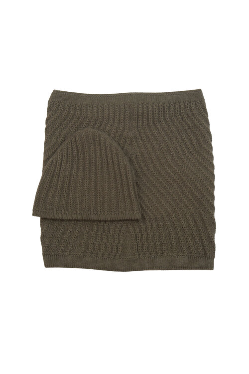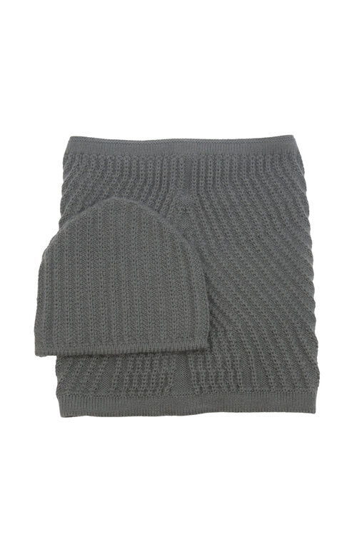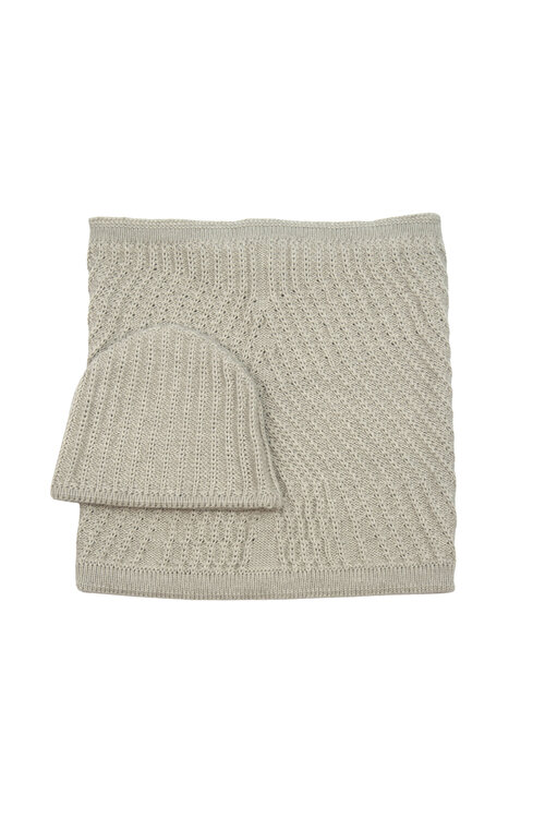 A beautiful snood and hat set combining considered pattern and textured stitch. This set is knit using a soft Superfine wool and angora blend. This set is part of Bonner of Ireland’s Heritage range.